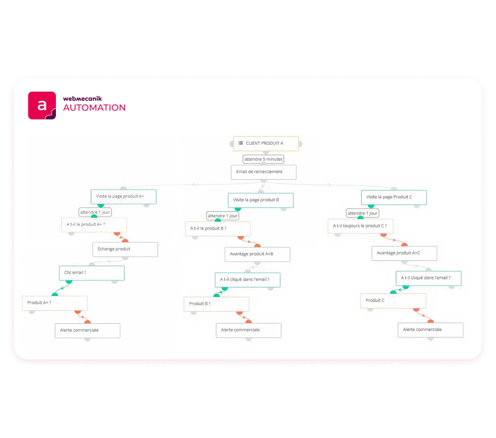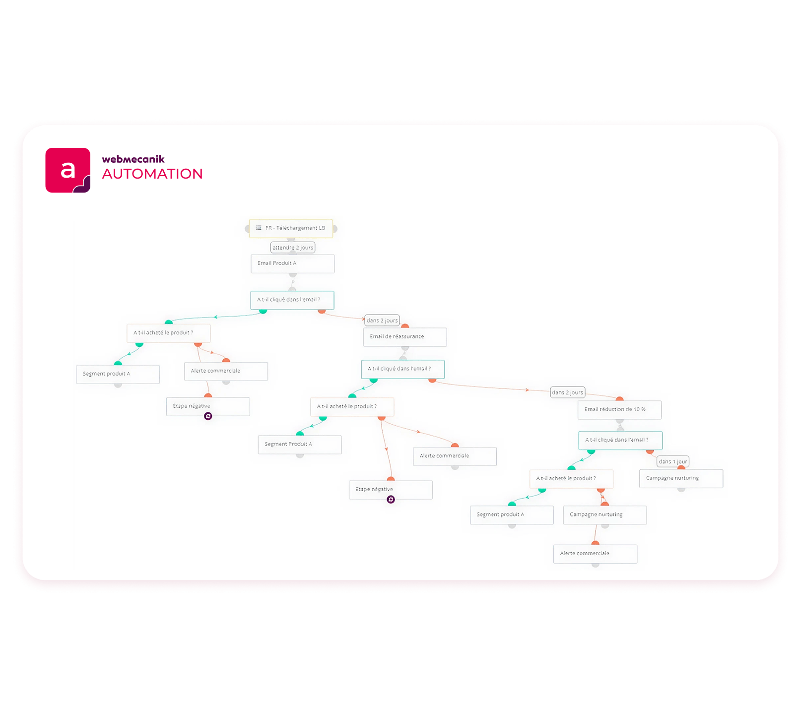 With Webmecanik Automation, a GDPR-compliant French solution designed for marketing and sales teams of all sizes, you can create high-performance workflows, tailored to your contacts’ behavior and integrated with your CRM.