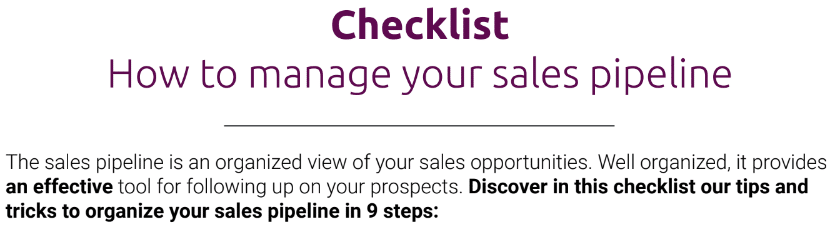 - A checklist : how to organize your sales pipeline?