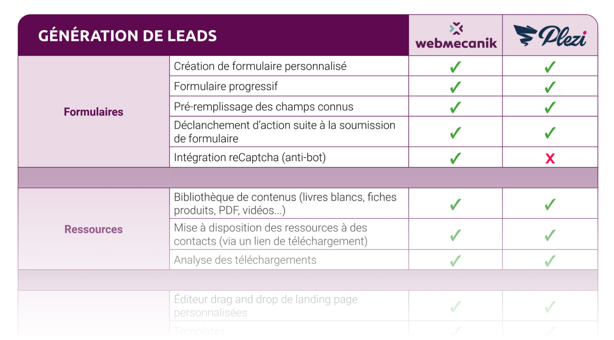 👉 In this comparison, discover the key differences between Plezi and Webmecanik, and download the full sheet to compare all features, use cases, and pricing.